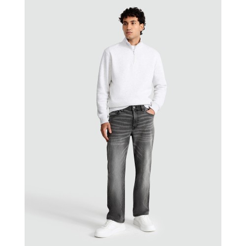 Cotton Rich Relaxed Straight Leg Jeans in Navy