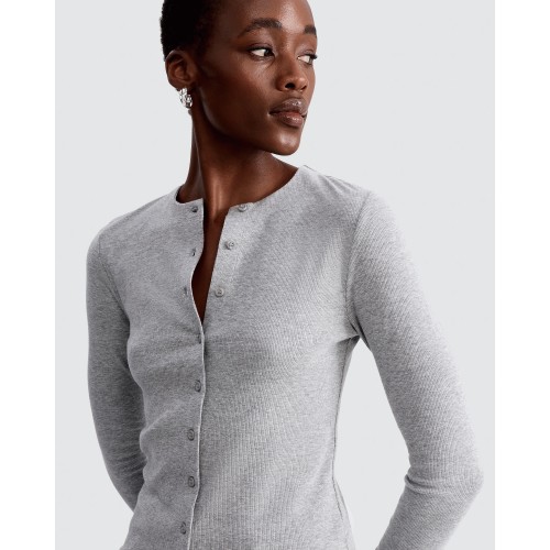 Cotton Rich Ribbed Button Up Long Sleeved Top in Yellow