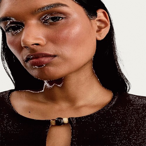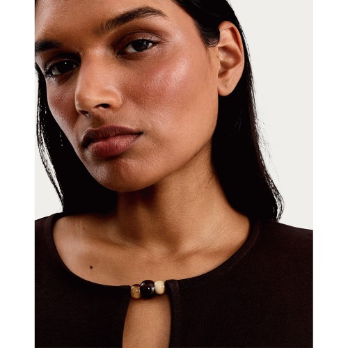 Pure Cotton Keyhole Detail Short Sleeved T-Shirt in Brown