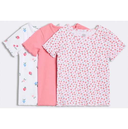 3-Pack Cotton Rich Ribbed Fruit Print Short Sleeved T-Shirts in Pink