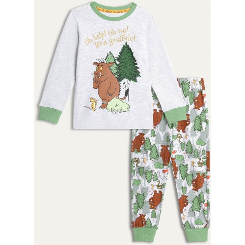 Gruffalo Print Cotton Rich Top and Bottoms Pyjama Set in Grey