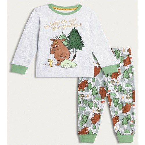 Gruffalo Print Cotton Rich Top and Bottoms Pyjama Set in Grey
