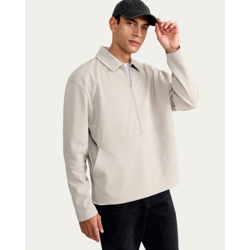 Ribbed Half Zip Relaxed Fit Sweatshirt in Stone