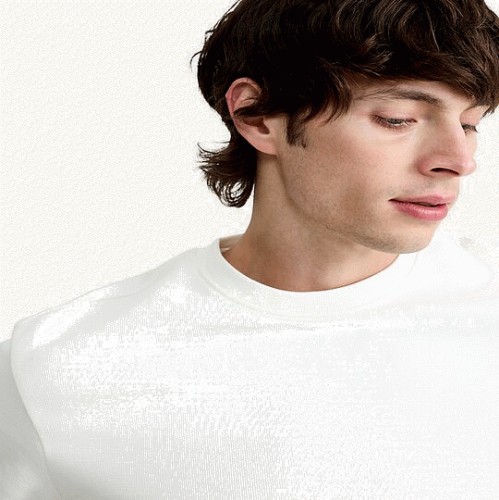 Cotton Rich Textured Crew Neck T-Shirt in Cream