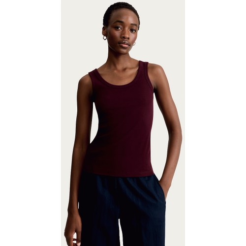 Cotton Rich Ribbed Scoop Neck Vest in Burgundy