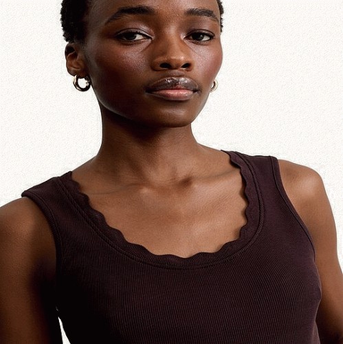 Cotton Rich Ribbed Scalloped Neck Vest in Brown