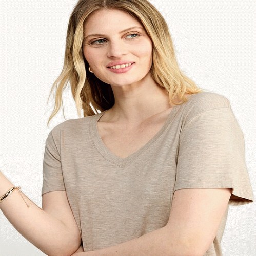 Cotton Blend Ribbed Thermal Short Sleeved T-Shirt in Grey