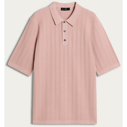 Cotton Blend Textured Short Sleeved Polo Shirt in Pink