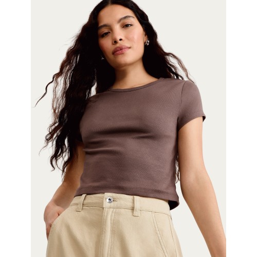 Cotton Rich Short Sleeved Cropped T-Shirt in Mink