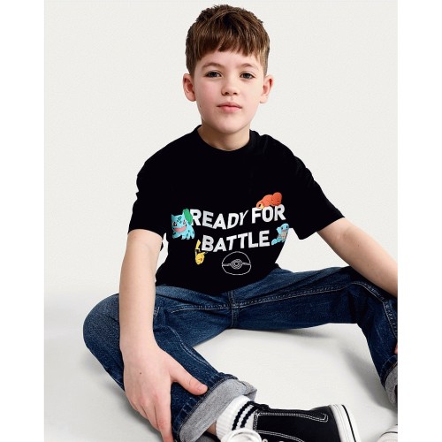 Pokemon Ready for Battle Pure Cotton Short Sleeved T-Shirt in Grey
