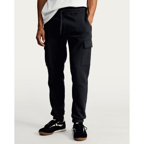 Cotton Rich Drawstring Cuffed Cargo Joggers in Black