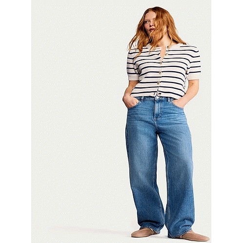 Pure Cotton Striped Boxy Fit T-Shirt in Multi Pink