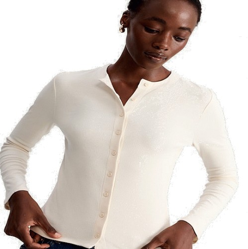 Cotton Rich Long Sleeved Button Through Top in Cream