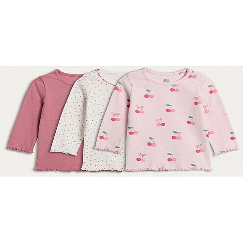3-Pack Cotton Rich Cherry Print Long Sleeved Tops in Pink