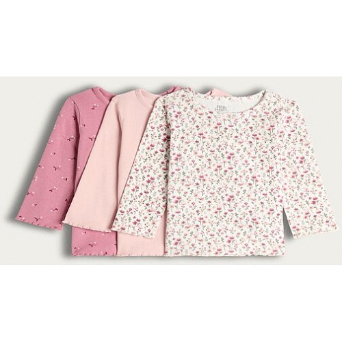 3-Pack Cotton Rich Floral Print Long Sleeved Tops in Pink