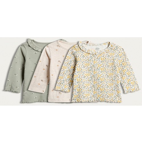 3-Pack Cotton Rich Floral Print Long Sleeved Tops in Green