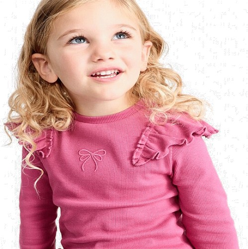 F&F Girls 2-Pack Cotton Rich Frill Long Sleeved Tops in Multi