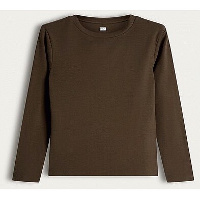 Cotton Rich Crew Neck Long Sleeved Top in Burgundy