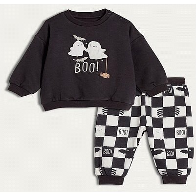 2-Piece Cotton Rich Boo Ghost Print Sweatshirt and Joggers Set in Dark Grey