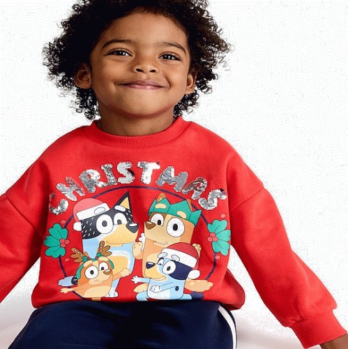 Bluey Cotton Rich Christmas Print Sweatshirt in Red