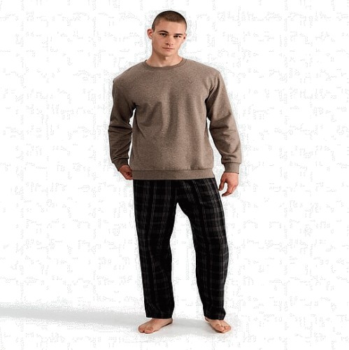 Cotton Rich Sweatshirt and Check Print Bottom Pyjamas in Grey