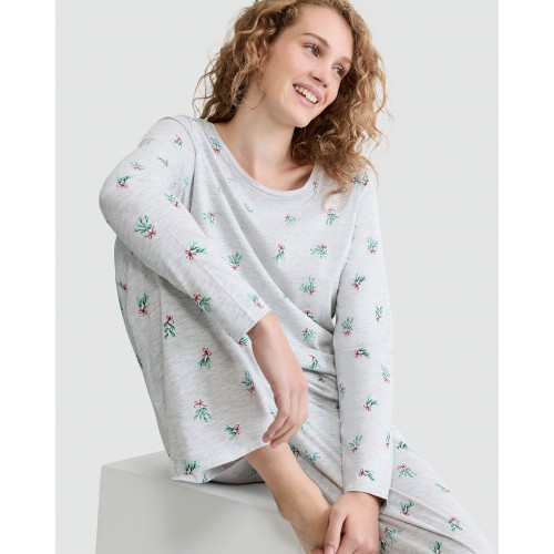 Cotton Rich Mistletoe Print Pyjamas Set in Grey