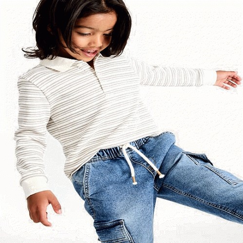 F&F Boys Cotton Rich Stripe Long Sleeved Polo Shirt in Grey