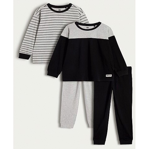 Boys 2-Pack Cotton Rich Stripe Print and Colour Block Pyjamas in Grey Multi