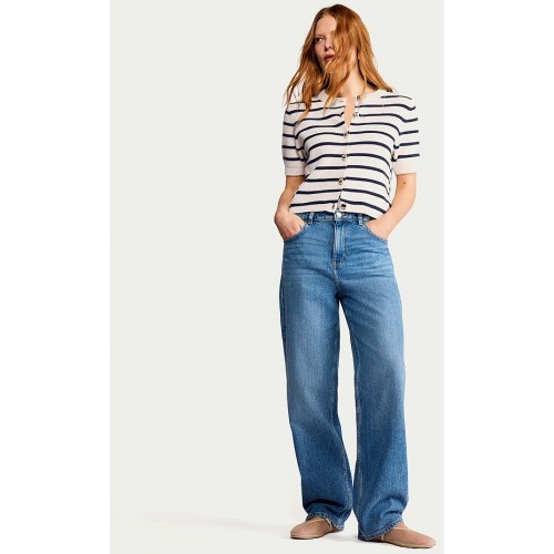 Cotton Rich Striped Contrast Collar Oversized Fit Shirt in Blue