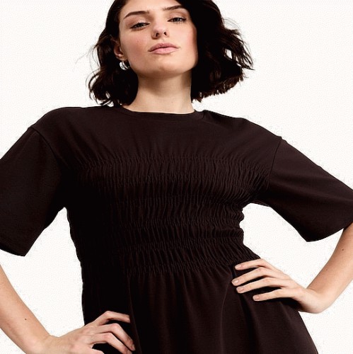 Cotton Rich Shirred Waist Midi Dress in Brown