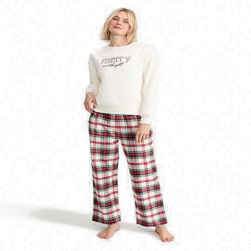 Cotton Rich Merry and Bright Sweatshirt and Bottoms Pyjama Set in Green