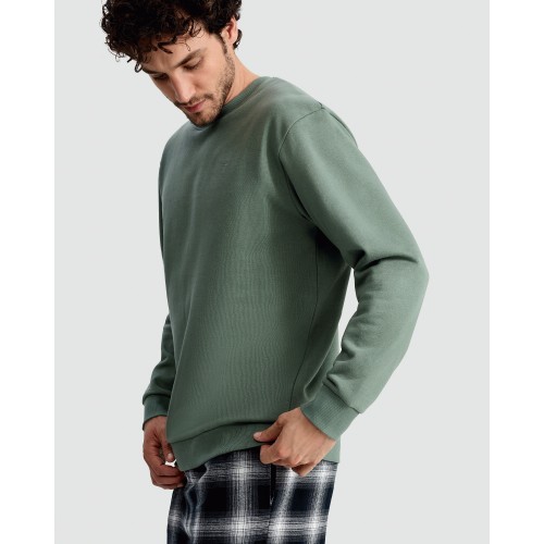 Cotton Rich Sweatshirt and Check Bottoms Pyjamas Set in Khaki
