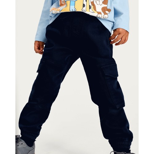 F&F Boys Cotton Rich Cuffed Fit Cargo Trousers in Navy