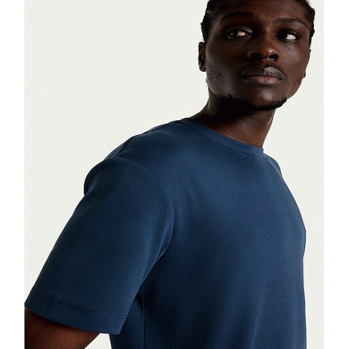 Cotton Rich Textured Crew Neck T-Shirt in Blue