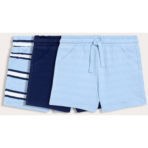 3-Pack Pure Cotton Textured Stripe Drawstring Shorts in Blue