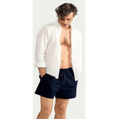 Textured Drawstring Swim Shorts in Navy
