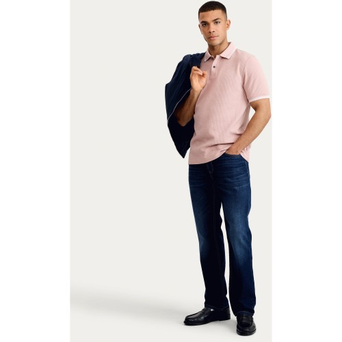 Cotton Blend Textured Short Sleeved Polo Shirt in Pink