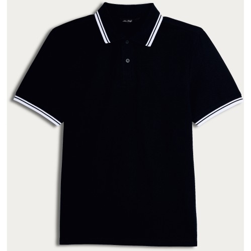Cotton Rich Tipped Short Sleeved Polo Shirt in Navy