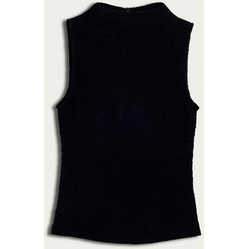 Cotton Rich Crinkle Textured High Neck Sleeveless Top in Black