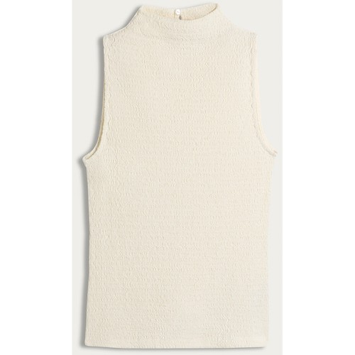 Cotton Rich Crinkle Textured High Neck Sleeveless Top in Cream