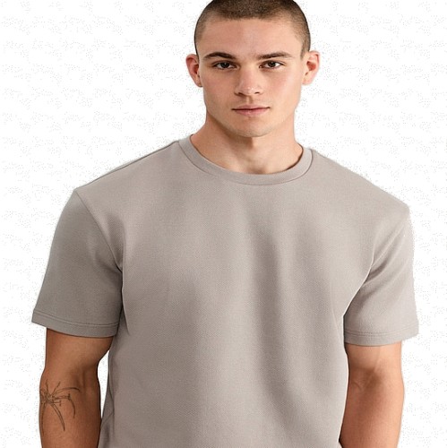 The F&F Edit Cotton Rich Textured Twill Short Sleeved T-Shirt in Dark Nude