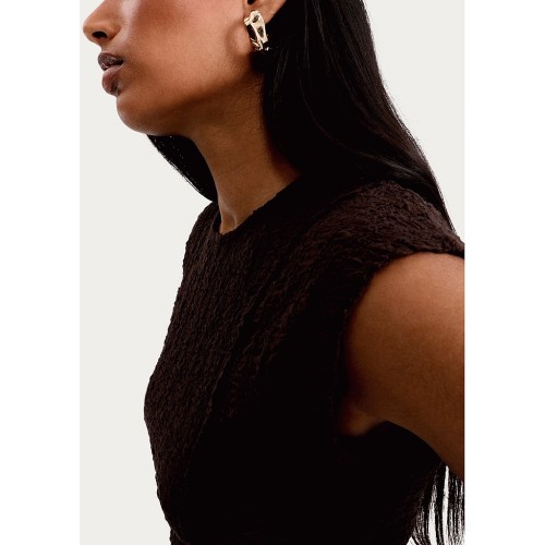 Cotton Rich Textured Peplum Hem T-Shirt in Chocolate