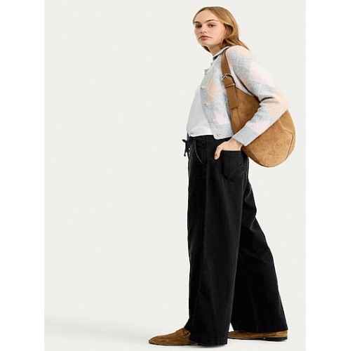 Cotton Rich Wide Leg Drawstring Jeans in Blue