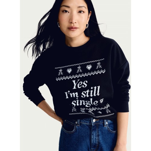 Cotton Rich Yes I'm Still Single Slogan Christmas Sweatshirt in Navy