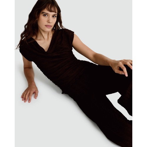 Textured Cowl Neck Cap Sleeved Co-ord Top in Chocolate