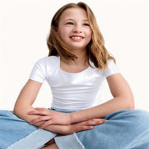 F&F Girls Polyamide Square Neck Short Sleeved Top in White
