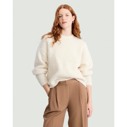 Textured Knitted Crew Neck Jumper with Wool in Cream