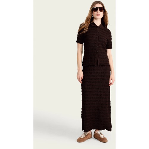 Crinkle Textured Button Up Co-ord Shirt in Chocolate