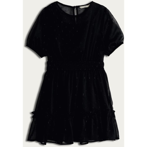 F&F Girls Textured Smocked Waist Short Sleeved Dress in Black