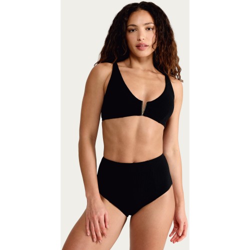 Crinkle Textured High Rise Bikini Bottoms in Green